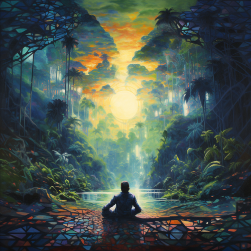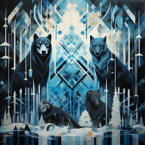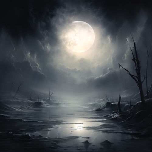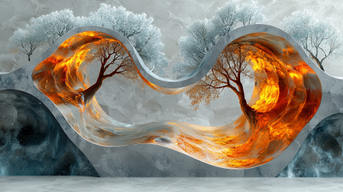 Abstract artwork with cold metallic atmosphere and serene landscape