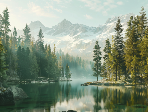 The image captures a soft morning sunlight gently covering a natural landscape. A light haze spreads across the scene, making the view slightly blurred, but the overall atmosphere feels calm and serene. The sky is painted in soft shades of blue and pale pink, with light evenly dispersed, providing a soothing brightness without being overwhelming. In the image, trees gradually disappear into the mist, or perhaps a still lake reflects the sky with gentle ripples on the water. The ripples are minimal, and the sky’s soft light reflects on the water, creating a dreamlike quality. All elements of the scene are harmoniously connected, offering a visually tranquil effect that helps ease the mind. --ar 4:5 --v 6.1