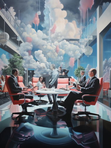 professional artwork, painting likely to be found in corporate headquarters, --ar 3:4