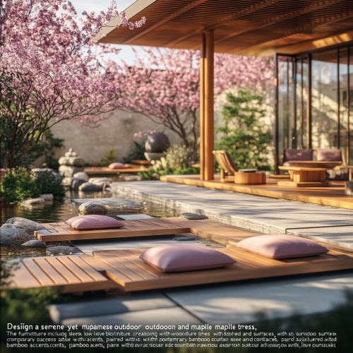 Minimalist basketball court with Japanese flag colors, cherry blossoms.