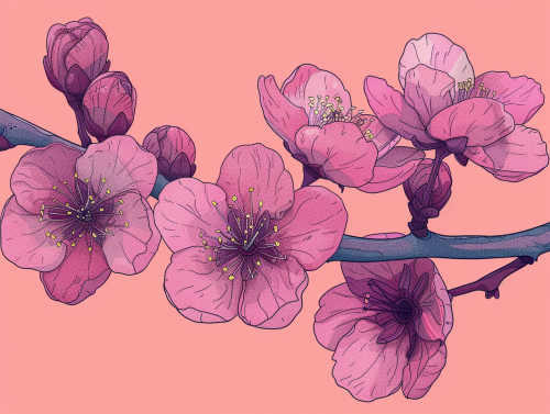 japanese ink, flat vector art illustration of a cherry blossom branch --ar 4:3 --v 6.0 --s 750 --style raw