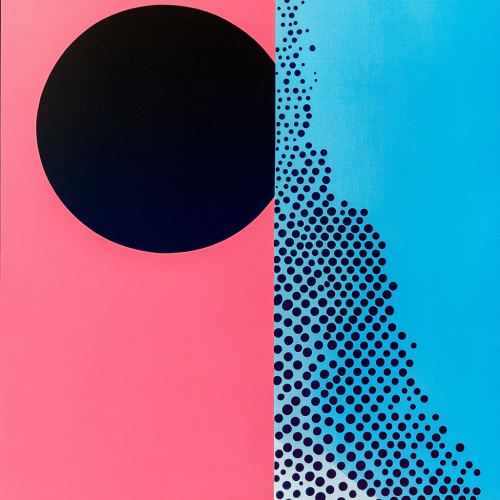 generate a simplistic minimalist collage, inspired by pop art and kusama. the subject is: a testosterone injection. vibrant flat three tone colors with a color palette of: pink and blue and black. multilayered, retro, creative and artistic --v 6.1