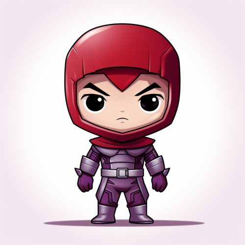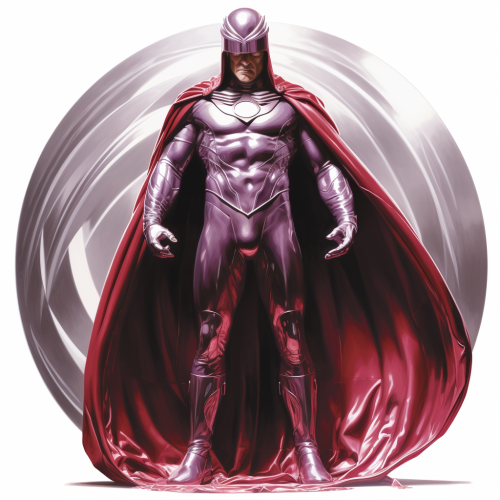X-Men: The Animated Series (1990s) Costume Colors: Purple, red, and black. Details: This version is a modernized take on the classic costume, featuring a more detailed cape and armor. It also includes the large "M" symbol and mask. Description: Seen in the animated series, this outfit is an iconic portrayal of Magneto in animation. --style raw --stylize 0 --v 6.1