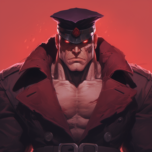 anime character that is a mix between M. Bison from street fighter and magneto from x-men. Muscular physique , long white hair. Mid 40's for age --niji 6