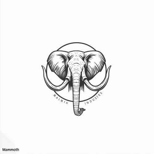minimalistic logo for a business named: "Mammoth Industries", modern design, typography, clean, white Background, designed by Alex Pardee, line art, vintage style --v 6.0