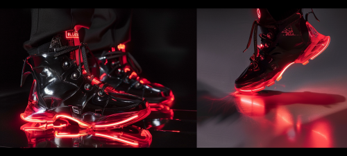 ballenciaga graphic reference, dark, metal, red neon, rock --ar 20:9