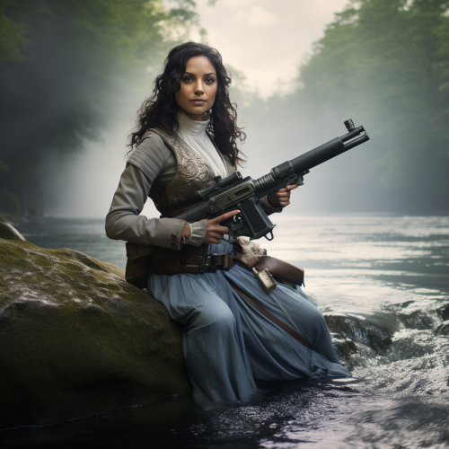 Photo of Egwene Al'Vere, of the two rivers, with a gun made of the one power