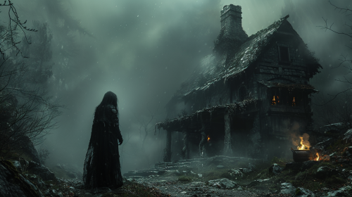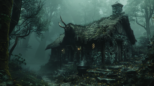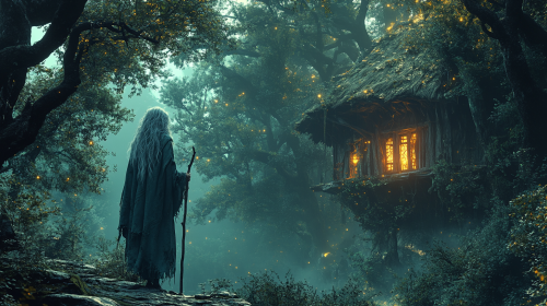 Mysterious Baba Yaga in Enchanted Forest Hut