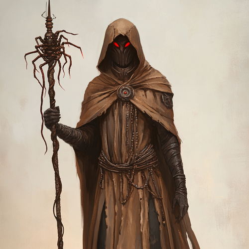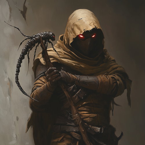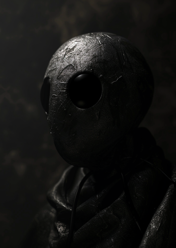 A dark silhouette of a hooded figure, face concealed in shadow, except for two glowing eyes. The channel's initials can be stitched onto the hood in a contrasting, eerie colo 1mb
