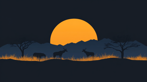 flat yellow gold image in the right part of the black gradient background, round gradient, dark blue color in the center, black is a primery color, use the image on the wild animals in the desert --ar 16:9