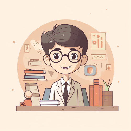 "A simple, friendly AI home tutor in a 2D illustration style, with a soft, calming color palette. The character has a warm smile, wearing a smart-casual outfit in neutral tones, and is surrounded by subtle educational elements like books, a chalkboard, and pencils. The background is minimalistic with light pastel colors, creating an inviting and supportive atmosphere. The AI home tutor appears approachable and patient, gently gesturing as if explaining a concept or assisting with learning." --v 5.2 --s 50