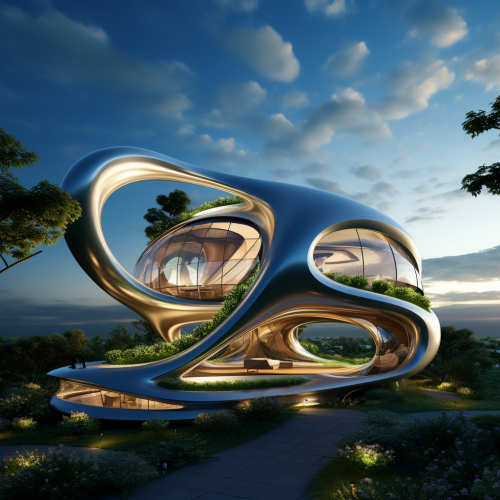Organic architecture in a hypermodern metropolis with Cyber Blue.