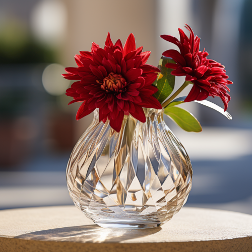 A beautiful cristal vase with a red flower elegany and fresh arrangement