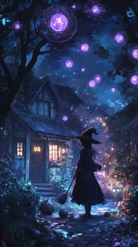 An enchanted pathway in a magical forest, lined with glowing flowers and fireflies, leading to a grand wizard’s tower. The sky filled with swirling stars and nebulas, creating a cosmic backdrop. Vibrant colors with a deep contrast, capturing a sense of wonder and magic. Created Using: Disney fairy tale aesthetic, vibrant lighting, fantasy architecture, painterly textures, soft glow effects, starry sky details, hd quality, natural look --ar 16:9 --v 6.0