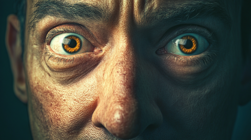 A person feeling uneasy after telling a lie, with their nose stretched out long like Pinocchio. Their anxious eyes are fixated on the camera, conveying discomfort and guilt, with high detail and historical accuracy ,photograph --ar 16:9