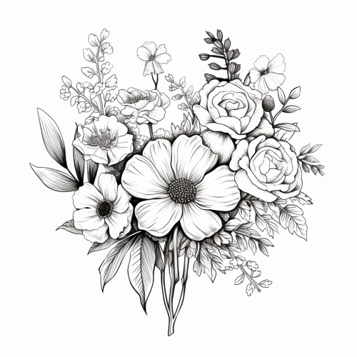 a bouquet of bergfrue flowers. make the sketch a fine line black and white tattoo drawing