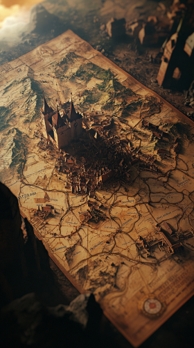 A map of 18th-century Bavaria with old architecture in the background, representing the origins of the Illuminati. Cinematic cinnematic --ar 9:16 --style raw