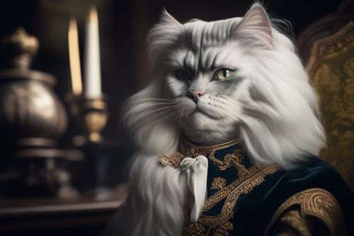 portrait of a white cat dressed as an 18th century lord with dark wig,cozy english mansion interior, open fires, beautiful biomechanical details, cute and intricate,with detailed parts Photography, Ultra-Wide Angle, Depth of Field, hyper-detailed, insane details, intricate details, Unreal Engine, Cinematic , Color Grading, Editorial Photography , Photography, Photoshoot, Shot on 70mm lens, Depth of Field, DOF, , Shutter Speed 1/1000, F/22, White Balance, 32k, Super-Resolution, Megapixel, , VR , Lonely, Good, Massive, , Backlight, Natural Lighting, Incandescent, Optical Fiber, Moody Lighting, Cinematic Lighting, Studio Lighting, Soft Lighting, Volumetric, Beautiful Lighting, Accent Lighting, Global Illumination, Screen Space Global Illumination, Ray Tracing Global Illumination, Optics, Scattering, Shadows, Rough, Shimmering, Ray Tracing Reflections, Lumen Reflections, Screen Space Reflections, Diffraction Grading, , GB Displacement, Scan Lines, R a y Traced, Ray Tracing Ambient Occlusi on, Anti-Aliasing, FKAA, TXAA, RTX, SSAO, Shaders, OpenGL-Shaders, GLSL-Shaders, Post Processing, Post-Production, Cell Shading, VFX, SFX, insanely , hyper maximalist , elegant, hyper realistic, super detailed, dynamic pose, photography, Hyper realistic, volumetric, photorealistic, ultra photoreal, ultra-detailed, intricate details, 8K, super detailed, full color, ambient occlusion, volumetric lighting , high contrast , HDR, 8k --ar 3:2 --quality 0.5 --v 4 --s 750