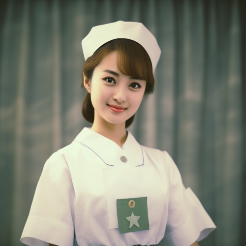 a beutiful japanese woman wearing nurse uniform / full shot / real photo / realistic