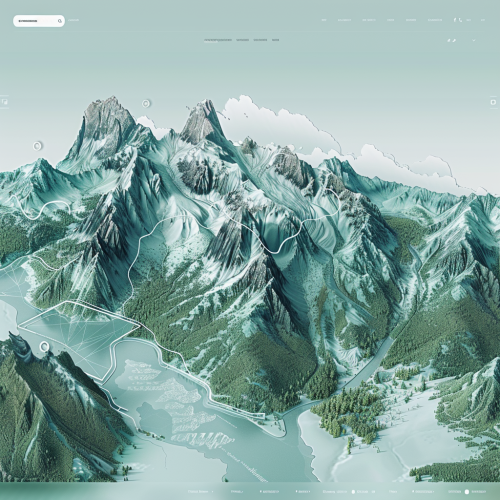 Web design for a government website, the main color of the website is green, mountains and water. At the top of the header is a scrolling banner,