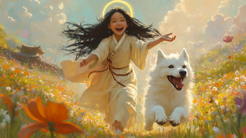 Running Figure Towards Radiant Angels, Uplifting and Joyful