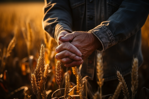 Handshake two farmer on the background of a wheat field at sunset. The concept of the agricultural business. --ar 3:2 --s 750 --upbeta --v 5.2 --style raw