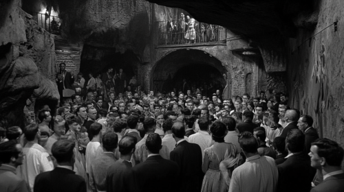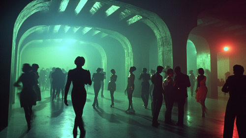 Andy Warhol Factory party in 1969 inside large tunnel like infinity tube structures in a giant psychadelic house, retro-geometric tunnel caverns, Charles Manson, Japanese Monsters, Smog Monster, Muscle men, Go-Go Dancers, stylish light and shadow, dark light, vivid details, photorealistic, vampires, Santa Claus, stylish light and shadow, photorealistic --ar 16:9 --v 6.1 --style raw --chaos 40