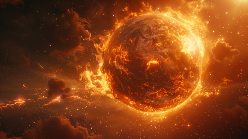 The earth's fiery birth, a primal scream echoing across the universe, molten lava pouring from the core of the planet, mountains rising from the ground, oceans violently churning, a newly formed planet bathed in the glow of distant stars, cosmic energy swirling around, intense and awe-inspiring, cinematic, high-resolution, 8K, UHD --s 750 --style raw --v 6.0 --ar 16:9