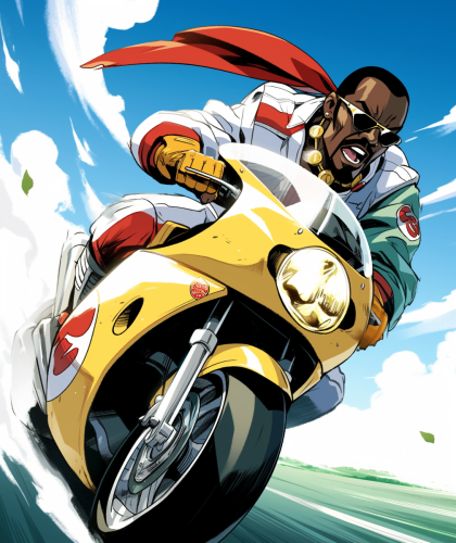 Ghostface Killah as speed racer, in the style of kawaii manga --ar 16:19 --style raw --stylize 1000 --niji 6