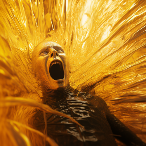 A parody of Edvard Munch’s painting The Scream but replacing the man with Krusty the Clown from the Simpsons. --v 6.0