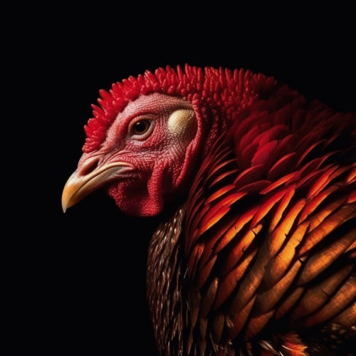 Square sticker of a very ornately cut extremely shimmering GOLD AND very bright shining red Cut Paper of a big fat Turkey, isolated against a deep black background, centered composition, extremely dramatic studio lighting, extreme and very crisp detail, 16K, photorealistic, dream --chaos 45 --stylize 995 --weird 65 --v 5.0