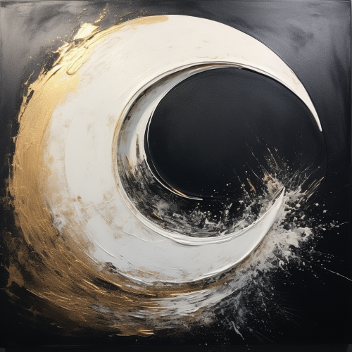 black and white oil colors on canvas, sea water crystalline, monocromatic, particular glossi gold paint, golden proportion, golden ratio, with shimmering metallic accents --iw 0.5 --weird 150 --c 10 --ar 1:1
