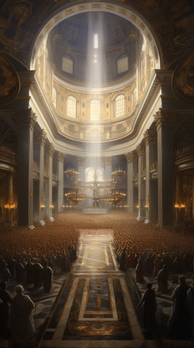 A depiction of a middle aged Charlemagne's coronation in St. Peter's Basilica, capturing the grandeur and significance of the event , 8k --ar 9:16