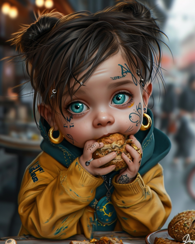 Sleeping Baby Anya in chibi style with Chimera doll.