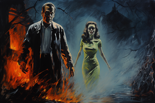 Halloween horror painting, pulp horror, vintage, science fiction, retro horror, --ar 3:2
