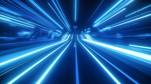 the highway blue and light blue color , Futuristic travel at the speed of light Time travel with super fast speed, Neon lights, overall blue color --ar 16:9