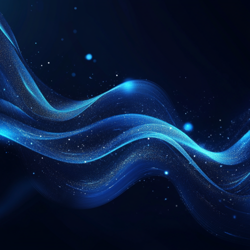 A digital abstract background featuring smooth and moderately curved blue lines against a dark backdrop. The design has a modern and sleek appearance with minimal wave patterns, focusing on simplicity and clean lines. There are only a few subtle glowing light effects and scattered particles to maintain a refined and calm atmosphere, with an overall minimalist aesthetic.