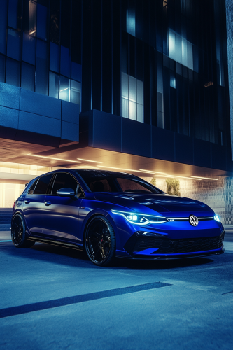 golf 8 car, realistic, dark blue color, realistic, creative, photoshop based, social media post, crative post, expert super social media post, --ar 2:3