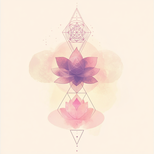 Create a minimalistic design that showcases sacred geometry, featuring simple shapes like circles, triangles, and hexagons. Use a limited color palette of soft pastels and incorporate subtle gradients. The composition should evoke a sense of tranquility and harmony, with a focus on balance and symmetry. Include elements like the Flower of Life or Metatron's Cube in an understated way, ensuring the overall aesthetic remains clean and serene