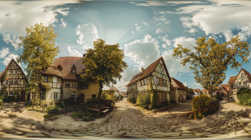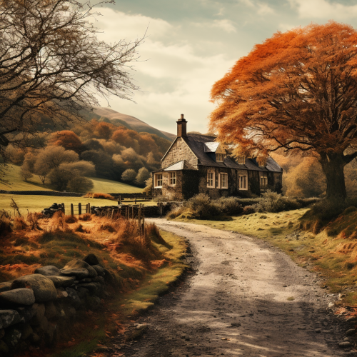 Landscape Photography, Old English Countryside, Picturesque Village, Thatched Cottages, Flower-Filled Gardens, Cobblestone Streets, Graceful Windmill, Quaint Stone Bridge, Tranquil River, Idyllic Scene, Golden Sunlight, Delightful Serenity, Charming Pastoral Views, Vintage Appeal, Countryside Escape, Captured with a Nikon D750, 24mm f/1.4 lens, --ar 16:9 --c 40 --s 120