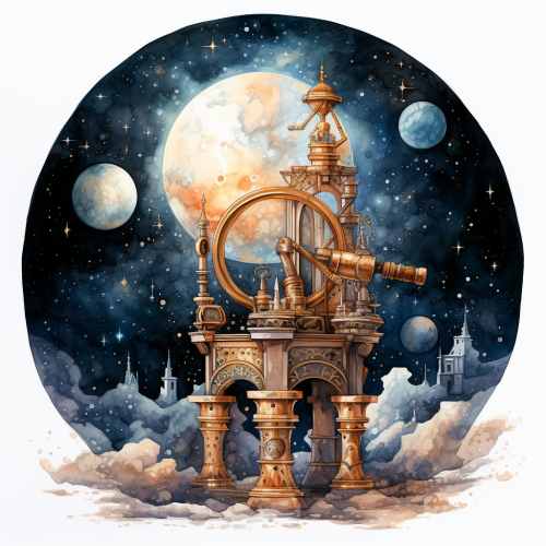 A black and gold paper diorama model of the night sky with stars and a moon against a dark blue background, with small golden accents on top of ornate scrollwork. The art style is fantasy-inspired, with a detailed character design that is inspired by vintage illustrations. The overall effect is a highly realistic watercolor painting. --ar 97:69