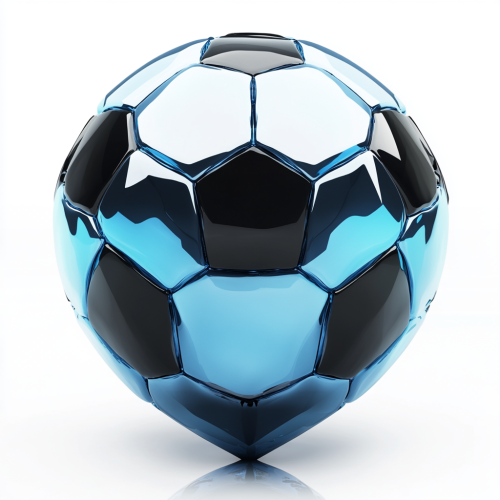 Create a high-resolution image of a large, blue and black diamond with a soccer ball seamlessly fused on top. The diamond should be centered in the frame with the soccer ball integrated naturally on its peak. Ensure both the diamond and the soccer ball are highly defined with no background, just a blank, transparent space around them