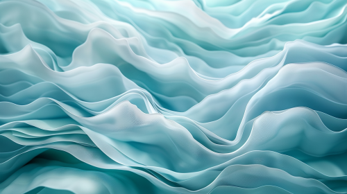 A luxurious abstract wallpaper with many small layers of silk and satin, stacked like the delicate pages of a book, each edge crisply defined. The layers are thin and detailed, with the background dominating, creating an open, refreshing atmosphere in cool tones of mint and light blue. hd quality, fine textures, soft lighting, soft gradients, elegant edge details --ar 16:9 --v 6.0