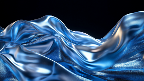 3D render of transparent silk with blue light reflections, flowing waves, dark background, abstract wallpaper, fluid texture, metallic surface, elegant design, high resolution, sharp focus, studio lighting, professional photograph, intricate details, highly detailed. --ar 125:71
