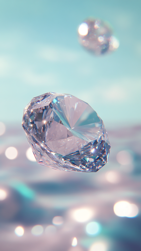 Generate a digital art for A large, sparkling diamond floating in the center of the screen, with a smaller diamond positioned slightly above and to the right. The background is textured with a subtle, light blue gradient using the primary color #0A84FF, creating a soft and elegant contrast. The diamonds have a slight shadow to add depth and realism. The atmosphere conveys a sense of luxury and sophistication. . --ar 9:16