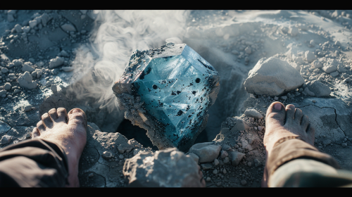 Generate a digital art for A large, sparkling diamond resting on a plush velvet cushion on the left side of the screen. The background is textured with a deep, rich blue (#0A84FF) resembling luxurious silk, creating a contrast between the vibrant blue and the shimmering facets of the diamond. A subtle shadow falls across part of the silk surface below the diamond, adding depth to the scene. The atmosphere conveys elements of elegance and opulence. . --ar 9:16