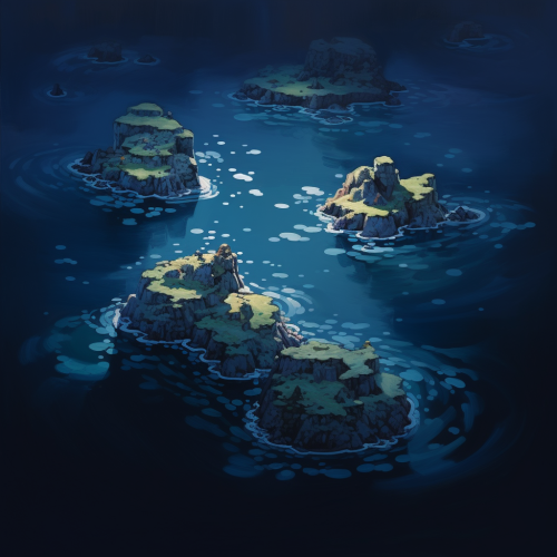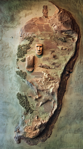 Photo: Map showing the terrain of the island and locations of the Moai statues Photo Description: The position of each statue suggests the location of resources, --ar 9:16
