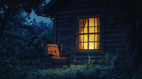 Cozy American living room with a stone fireplace, plush armchair, and a soft throw blanket, warm ambient lighting, slightly blurred to add a welcoming vibe for apparel mockups.