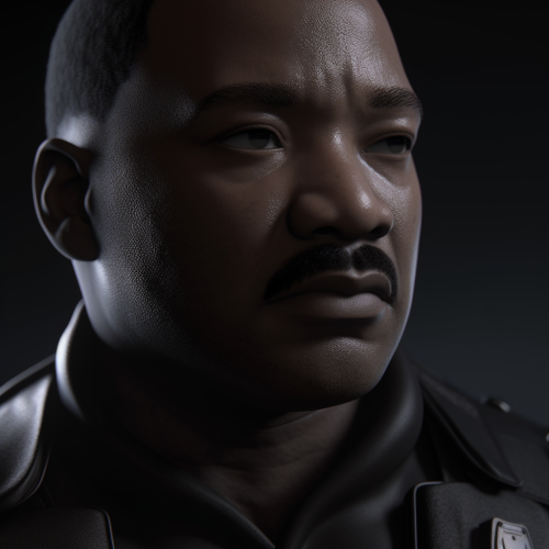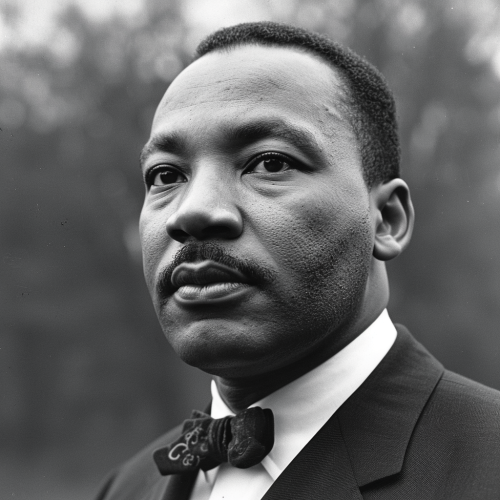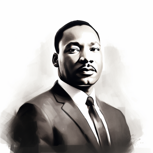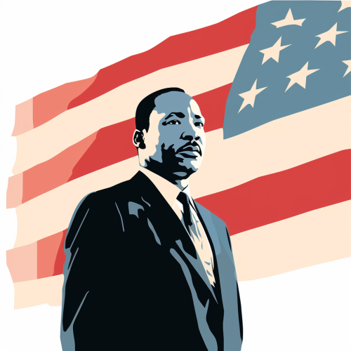 A colorful vector of Martin Luther King standing in front of a large flag of the United States, uses flat colors. Isolated on pure white background