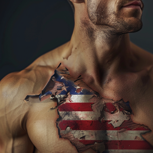 realistic 3d american flag tattoo on chest of man, ui/ux template --style raw --v 6.0